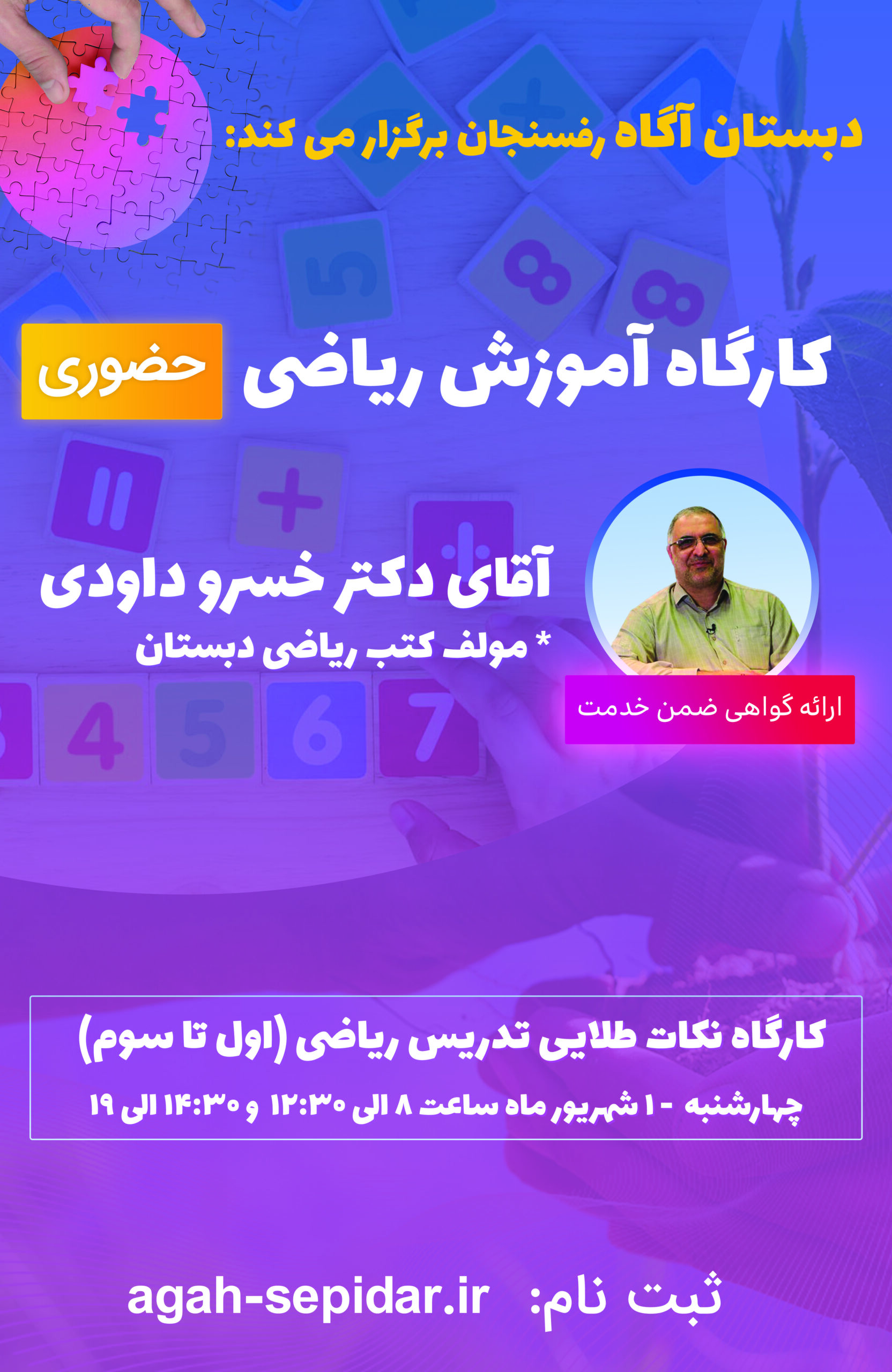 این دوره توسط جناب آقای خسرو داودی، مولف محترم کتب ریاضی دبستان برگزار می گردد.